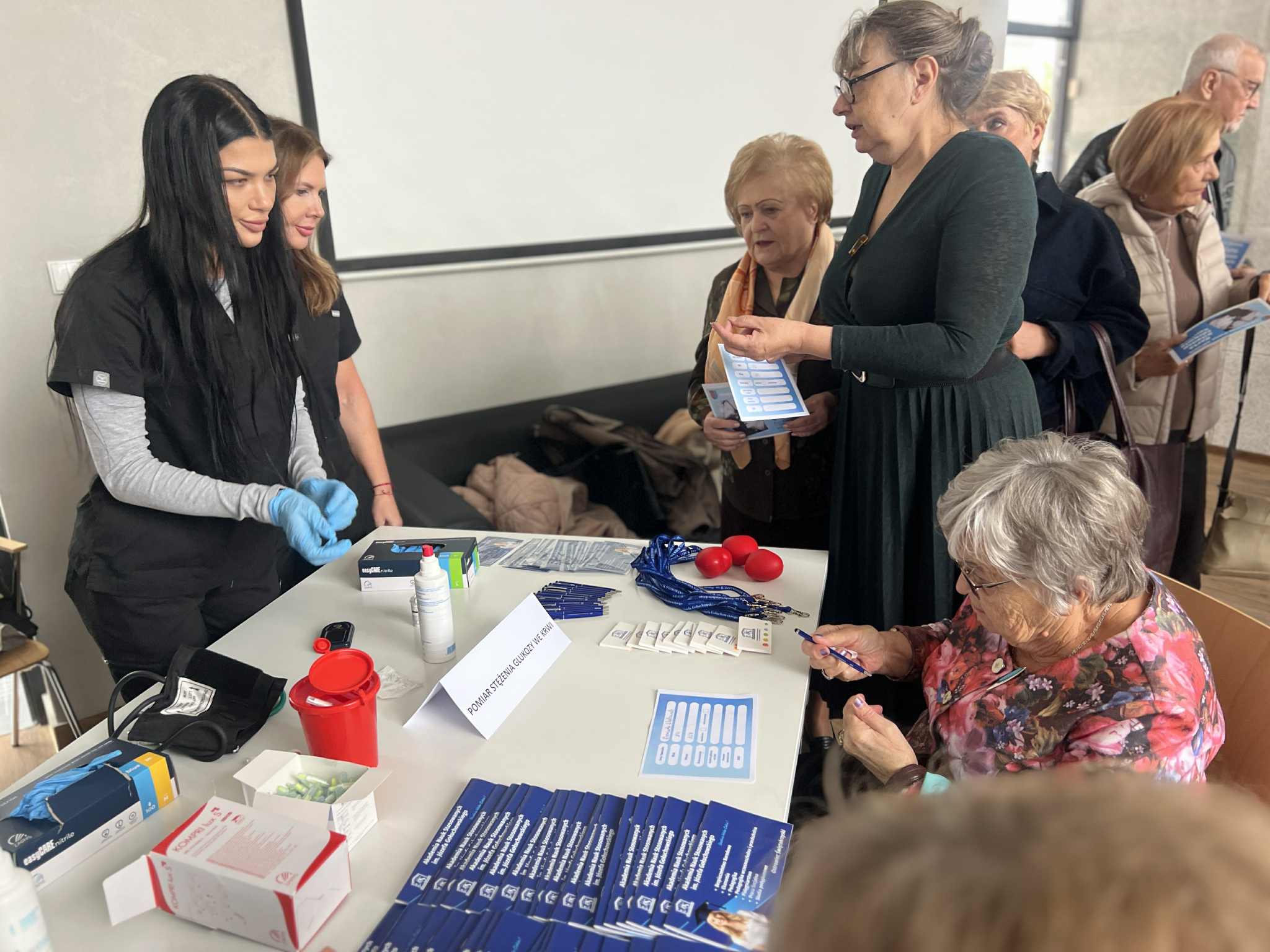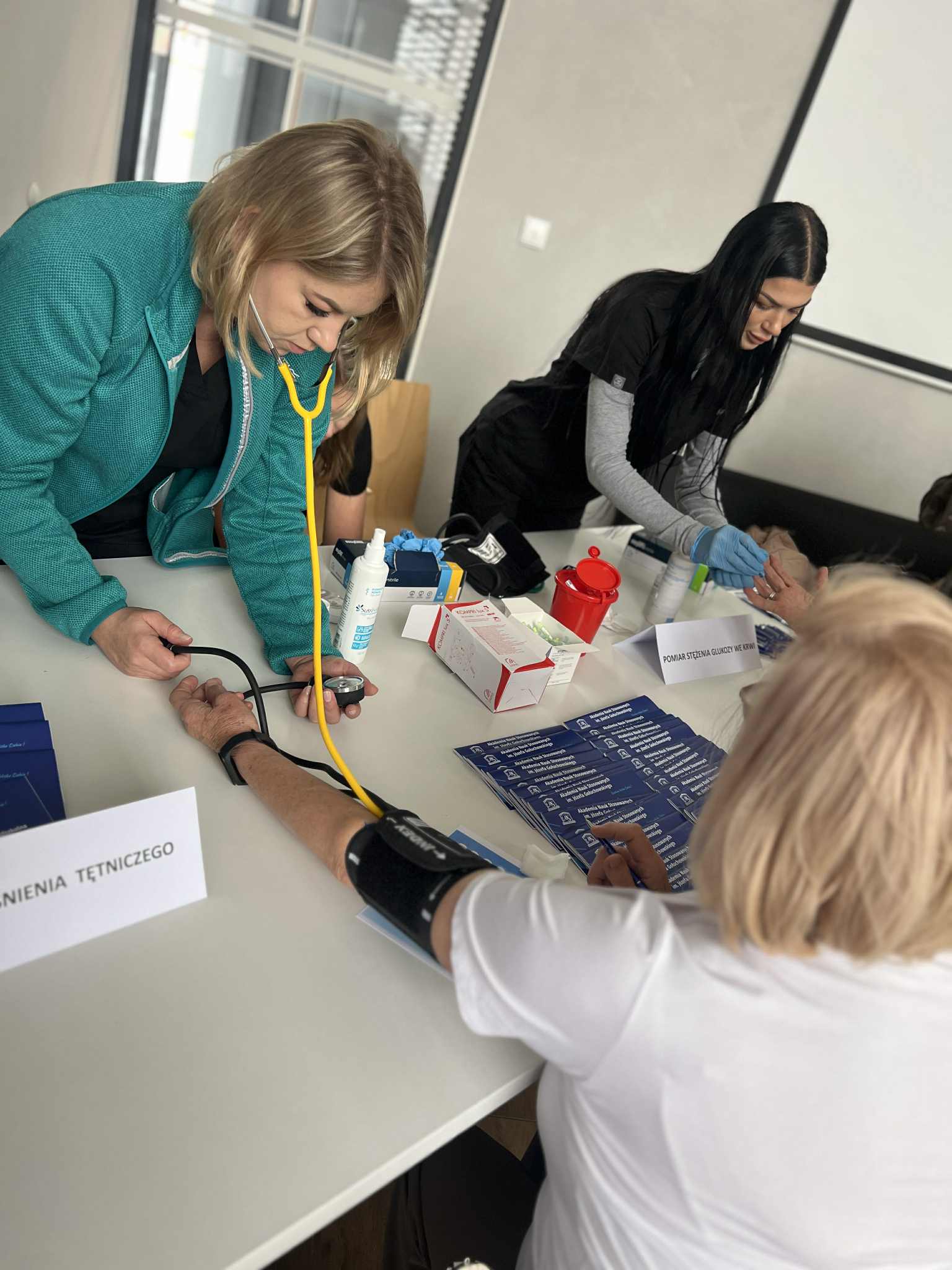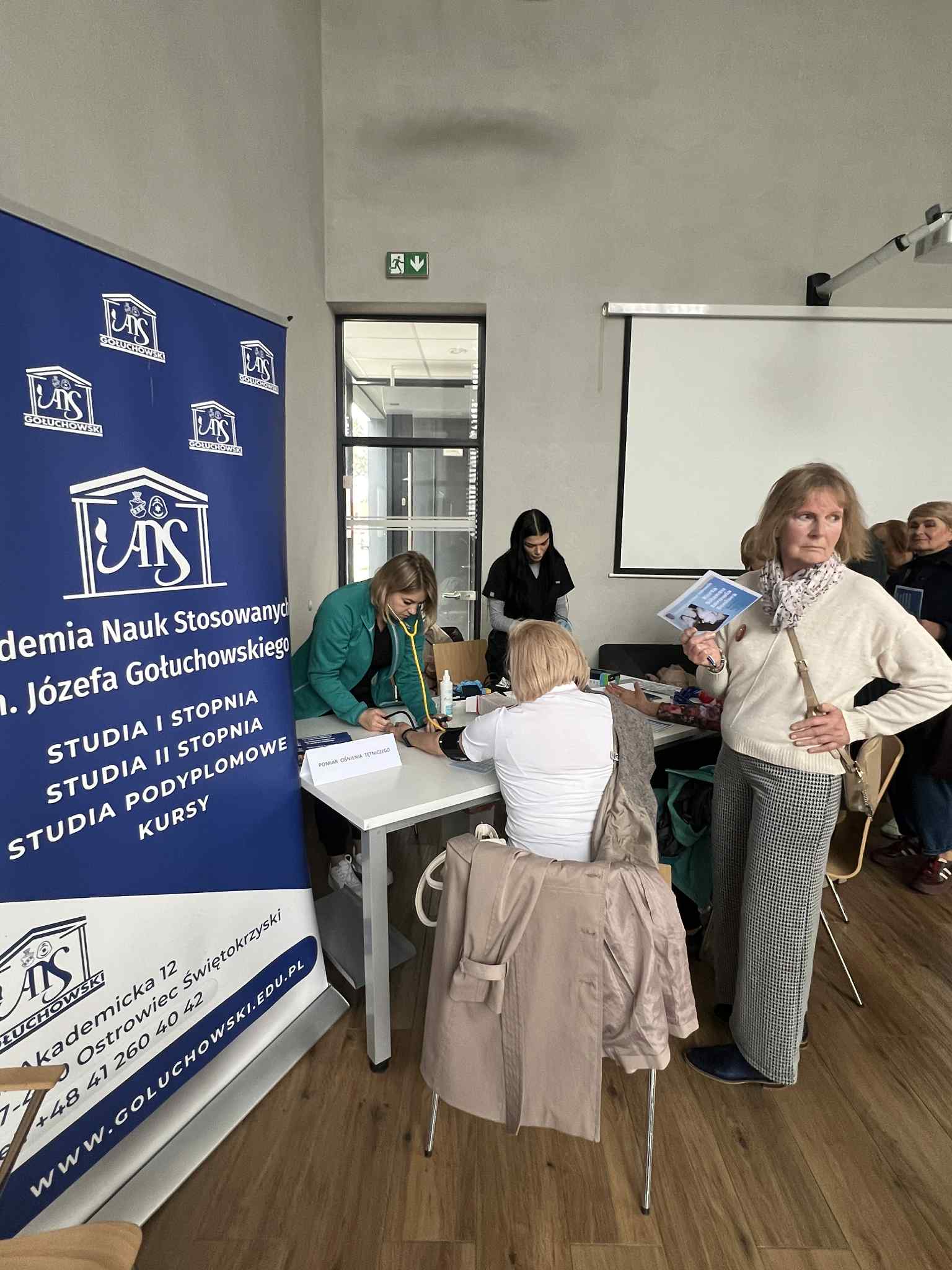 W ramach powiatowego programu profilaktycznego “Akademia Pełna Zdrowia” w dniu 9 października 2025r. odbyło się spotkanie dla seniorów powiatu ostrowieckiego. W ramach wydarzenia seniorzy wzięli udział w prelekcjach na temat zdrowia i kondycji, a także mogli skorzystać z bezpłatnych badań profilaktycznych. Jedną z instytucji wspierających wydarzenie była oczywiście Akademia Nauk Stosowanych im. Józefa Gołuchowskiego. Wykładowcy oraz studenci kierunku pielęgniarstwa przygotowali stoisko profilaktyczne, w którym seniorzy wykonywali m.in. pomiar ciśnienia i poziom cukru we krwi.