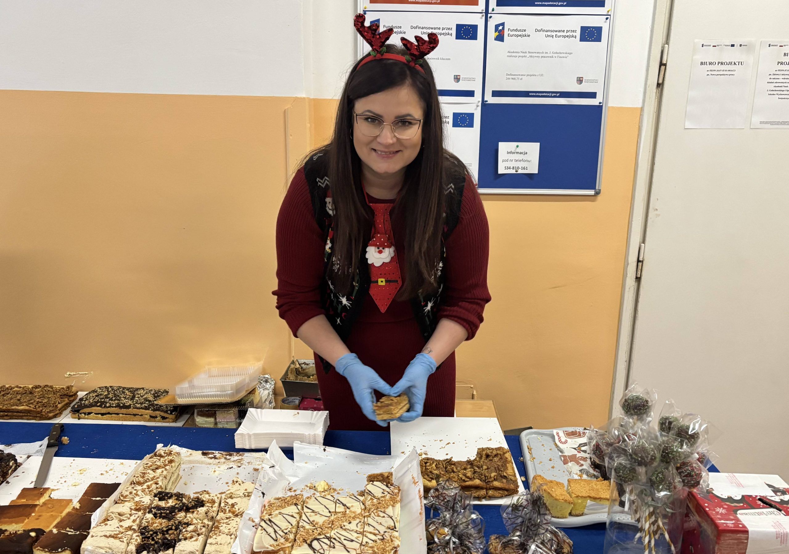 Świąteczny Kiermasz Ciast W dniach 6-7 i 13-14 grudnia 2025 r. tradycyjnie na terenie Akademii Nauk Stosowanych im. Józefa Gołuchowskiego odbył się Świąteczny Kiermasz Ciast zorganizowany przez Samorząd Studencki ANSG. Jak co roku cały dochód z kiermaszu został przekazany na cel charytatywny. W tym roku pieniądze trafiły dla dzieci z Niepublicznej Placówki Opiekuńczo-Wychowawczej „Nasz Dom” w Denkowie oraz Niepublicznej Placówki Opiekuńczo-Wychowawcza nr 1 w Małachowie. Tegoroczne wydarzenie pokazało, jak dużym zaangażowaniem, kreatywnością i inicjatywą wykazują się nasi studenci, którzy przygotowali bogatą ofertę domowych wypieków oraz tradycyjne dania świąteczne. Na szczególne wyróżnienie zasługują także świąteczne stroiki i ozdoby wykonane przez studentów pierwszego roku pielęgniarstwa. Jak co roku, do akcji włączyły się władze uczelni, studenci, wykładowcy, słuchacze UTW a także pracownicy administracyjni ANSG. Dzięki hojności wszystkich uczestników kiermaszu oraz ciężkiej pracy studentów udało się zebrać rekordową kwotę 16181,14 złotych.